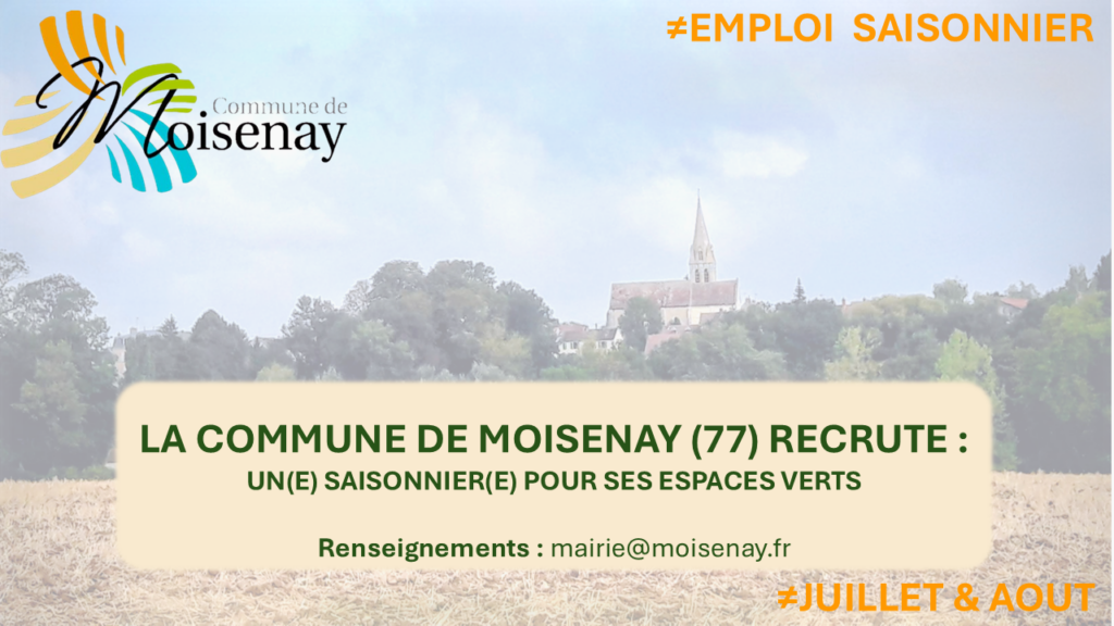 Dans le cadre du renfort estival, la commune de Moisenay recherche un agent saisonnier aux espaces verts 🌱
